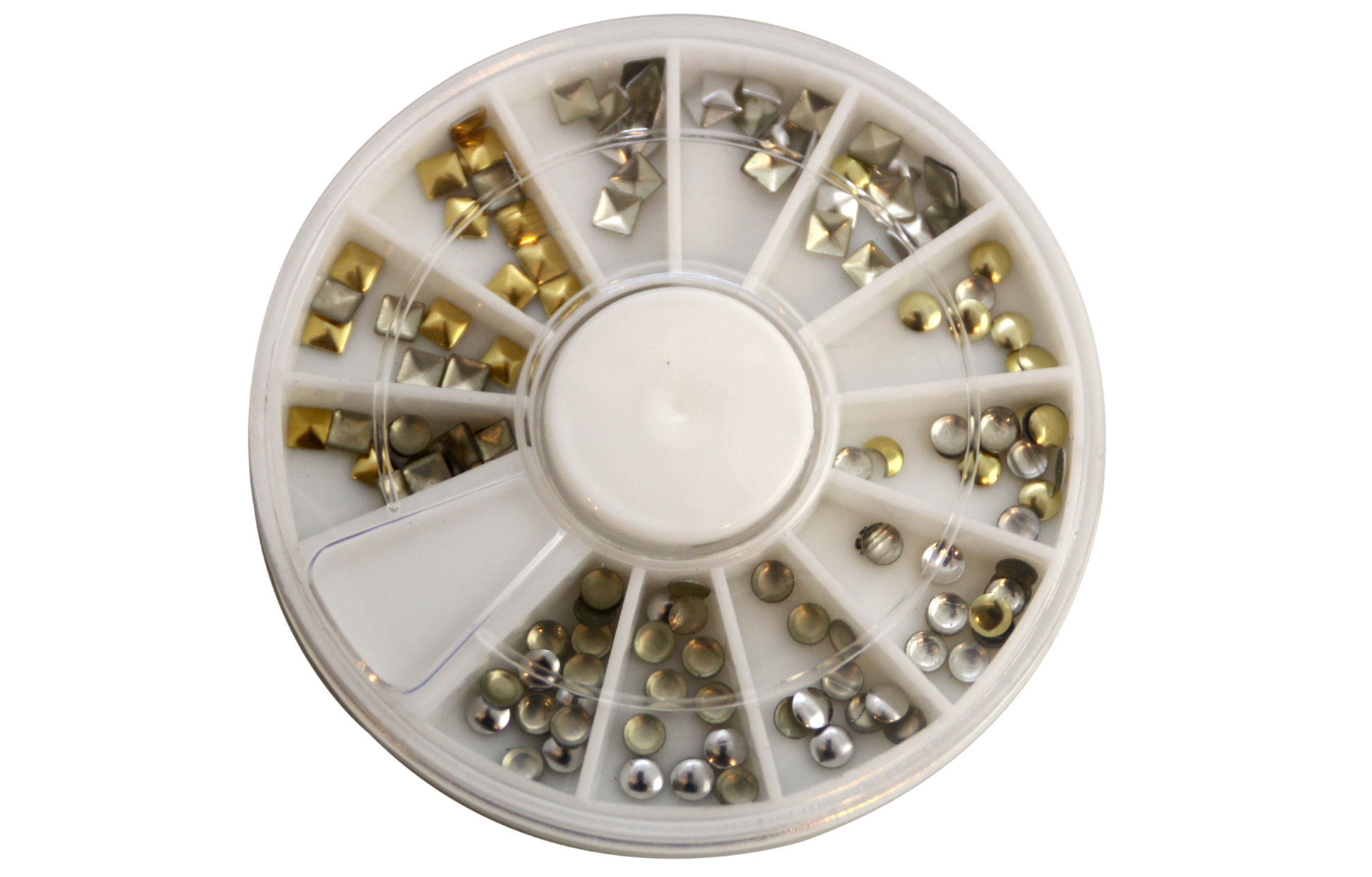 Alluminium nail studs in gold and silver colour. Wheel contains 120pcs